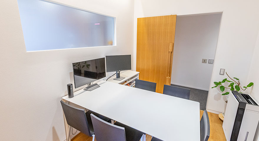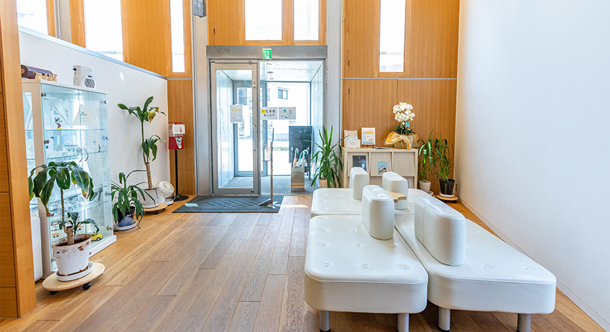 院内は木の温もりを大切にしたリラックスいただける空間です。プライバシーに配慮した明るい広々とした診療室で受診いただけます。